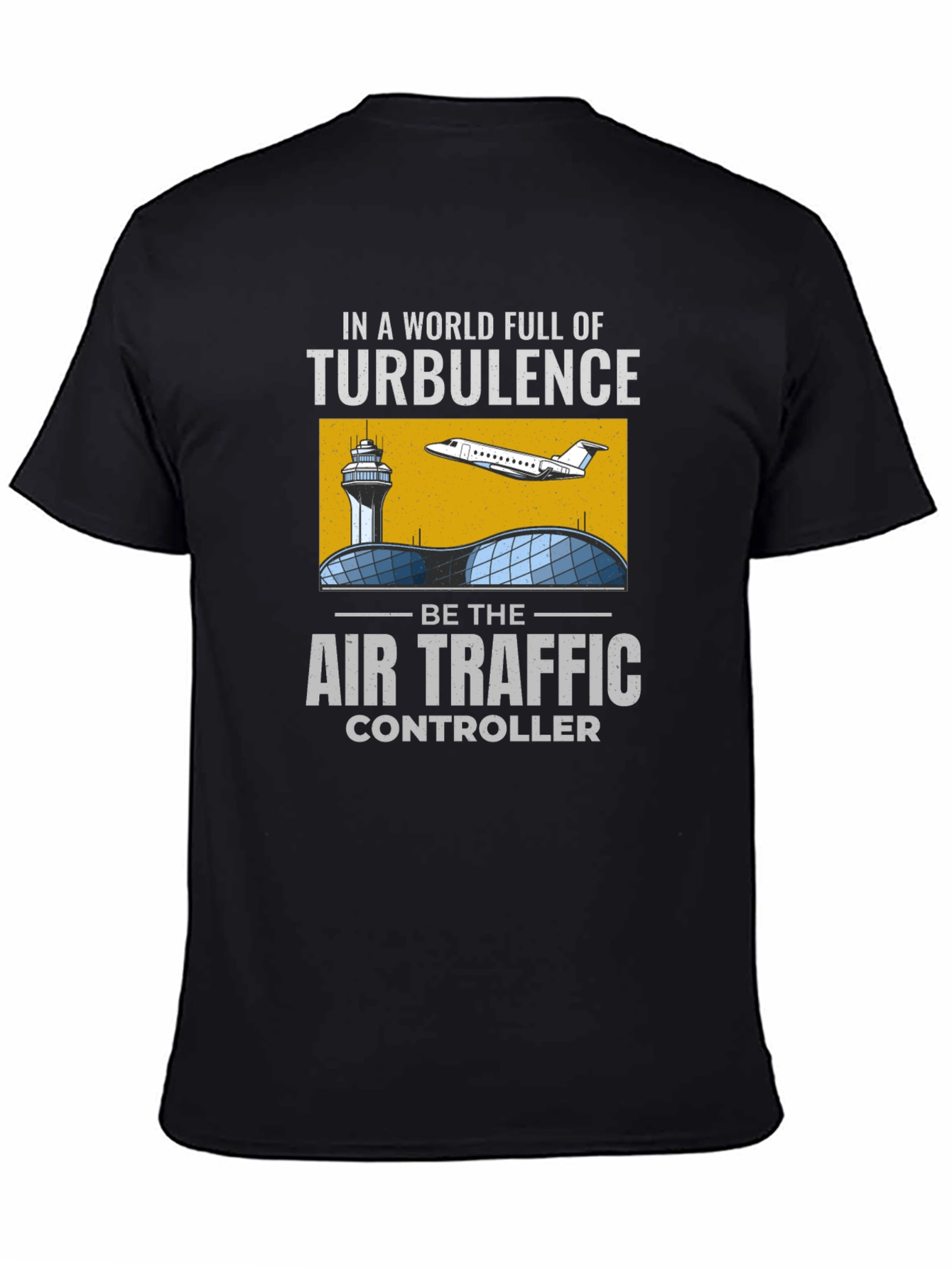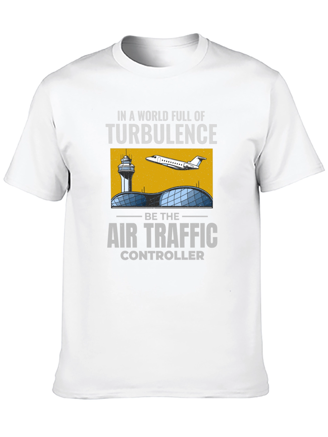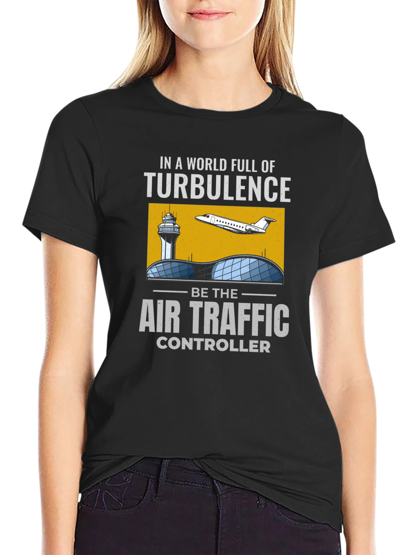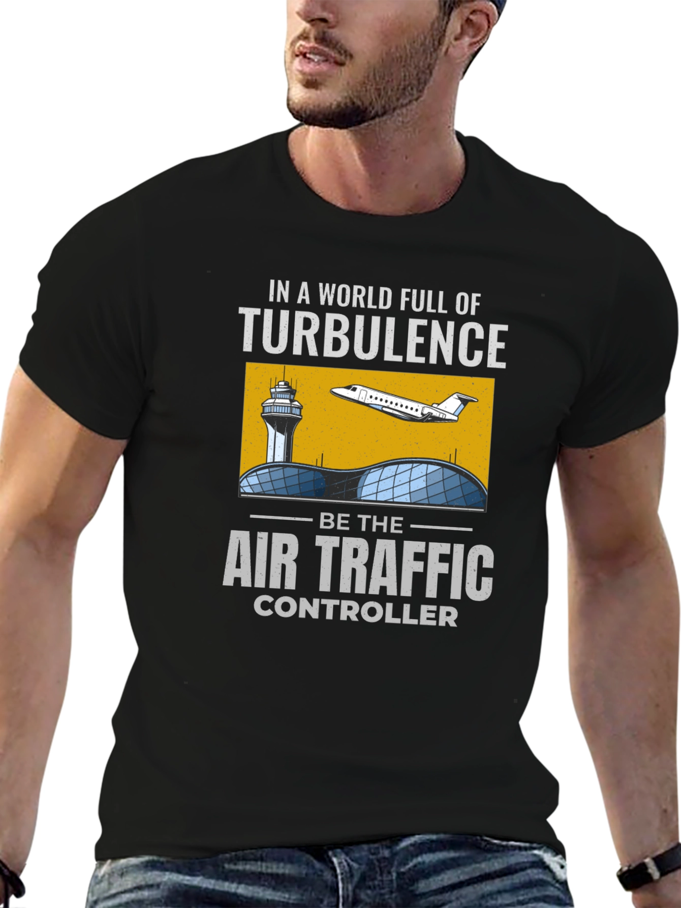 Show your passion with this unique Air Traffic Controller T-shirt! Featuring a creative design with an airport control tower, airplane, and the phrase "In a world full of turbulence, be the air traffic controller," this tee is sure to turn heads. Made from comfortable and durable fabric, it's perfect for everyday wear, aviation enthusiasts, or as a thoughtful gift. Express your love for aviation with this one-of-a-kind shirt. Get yours today!