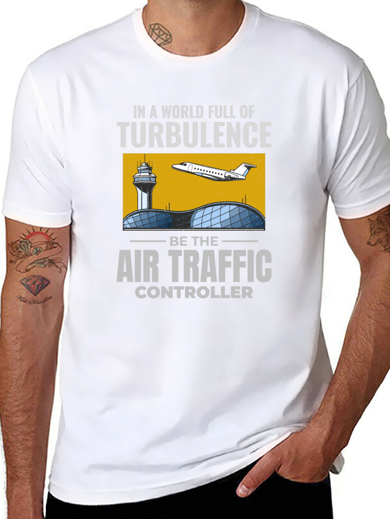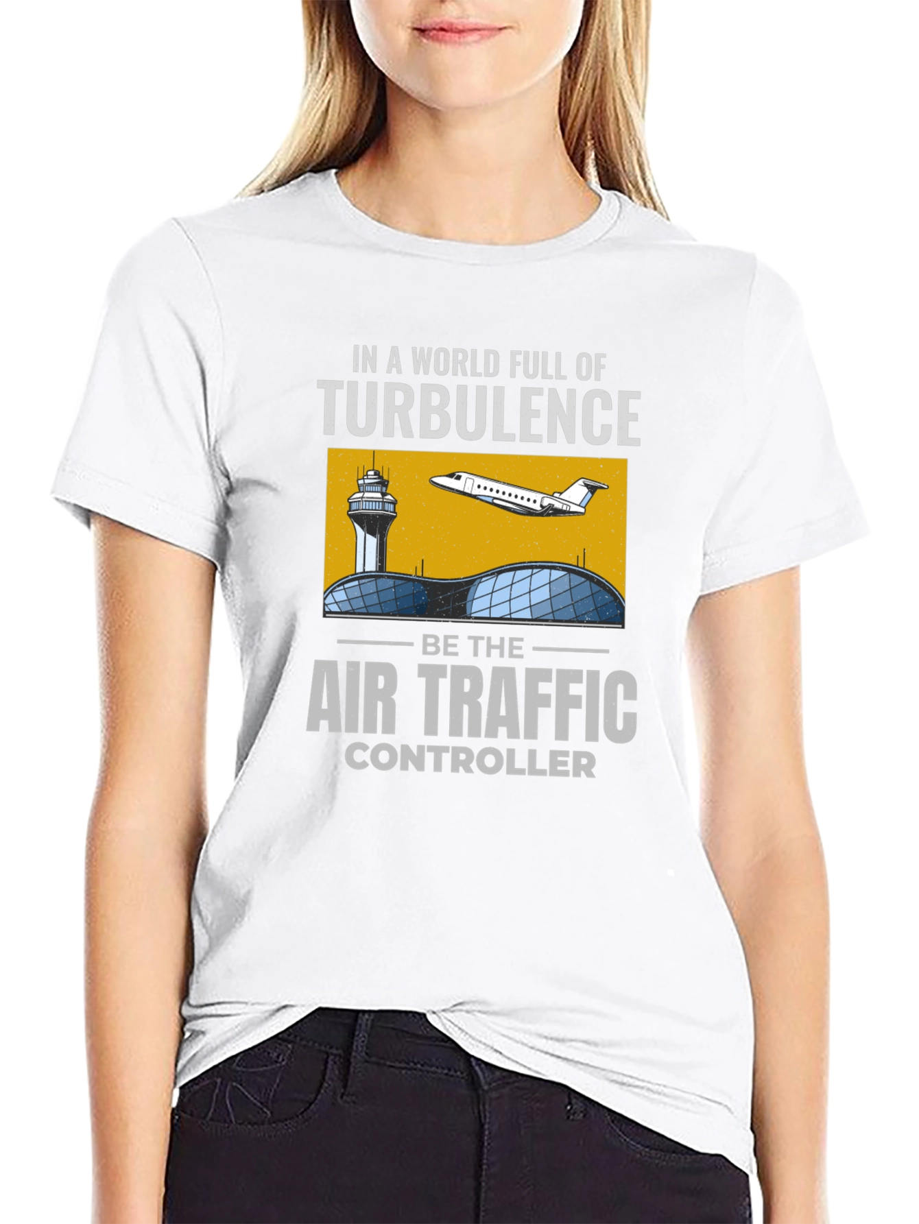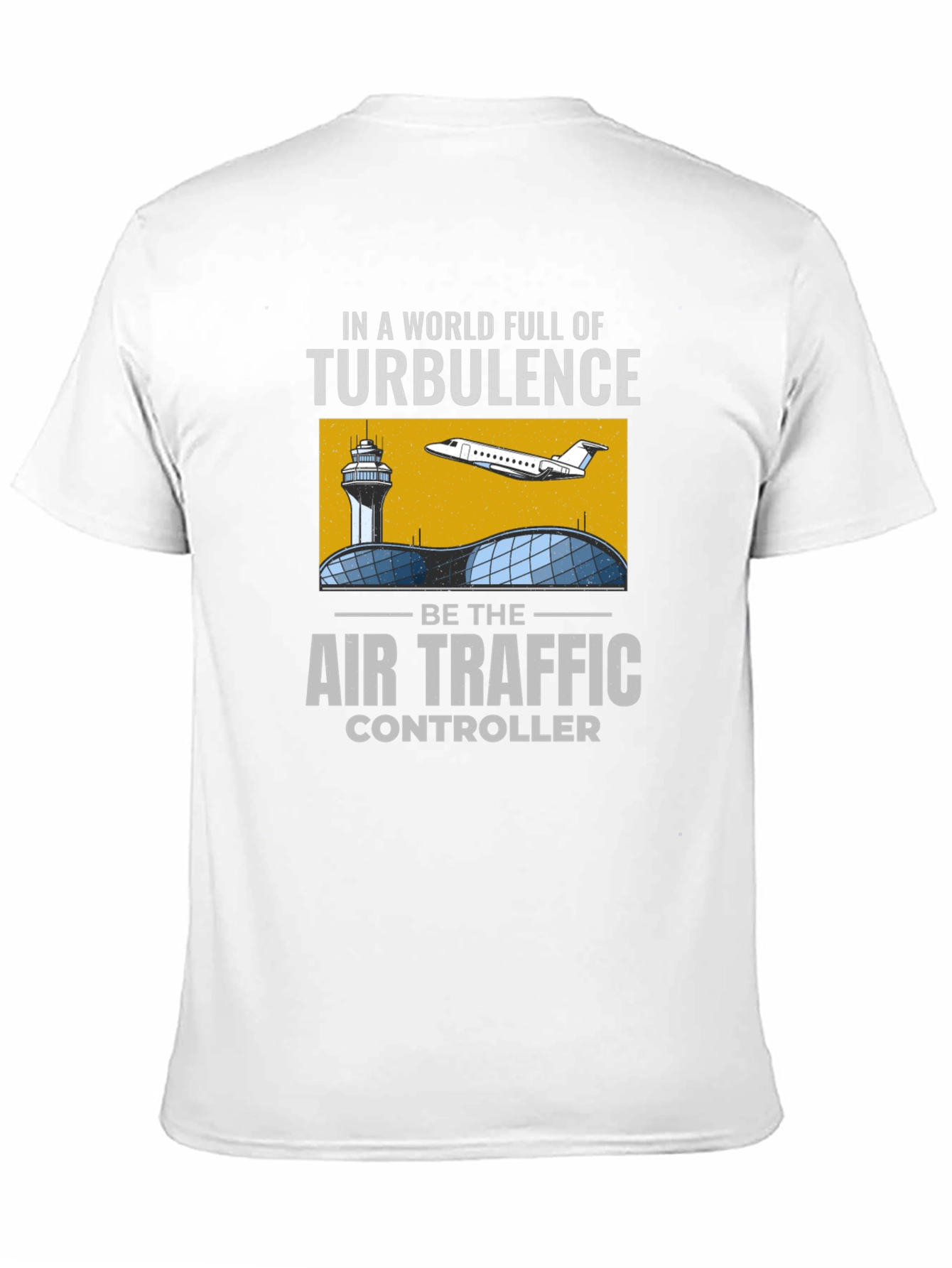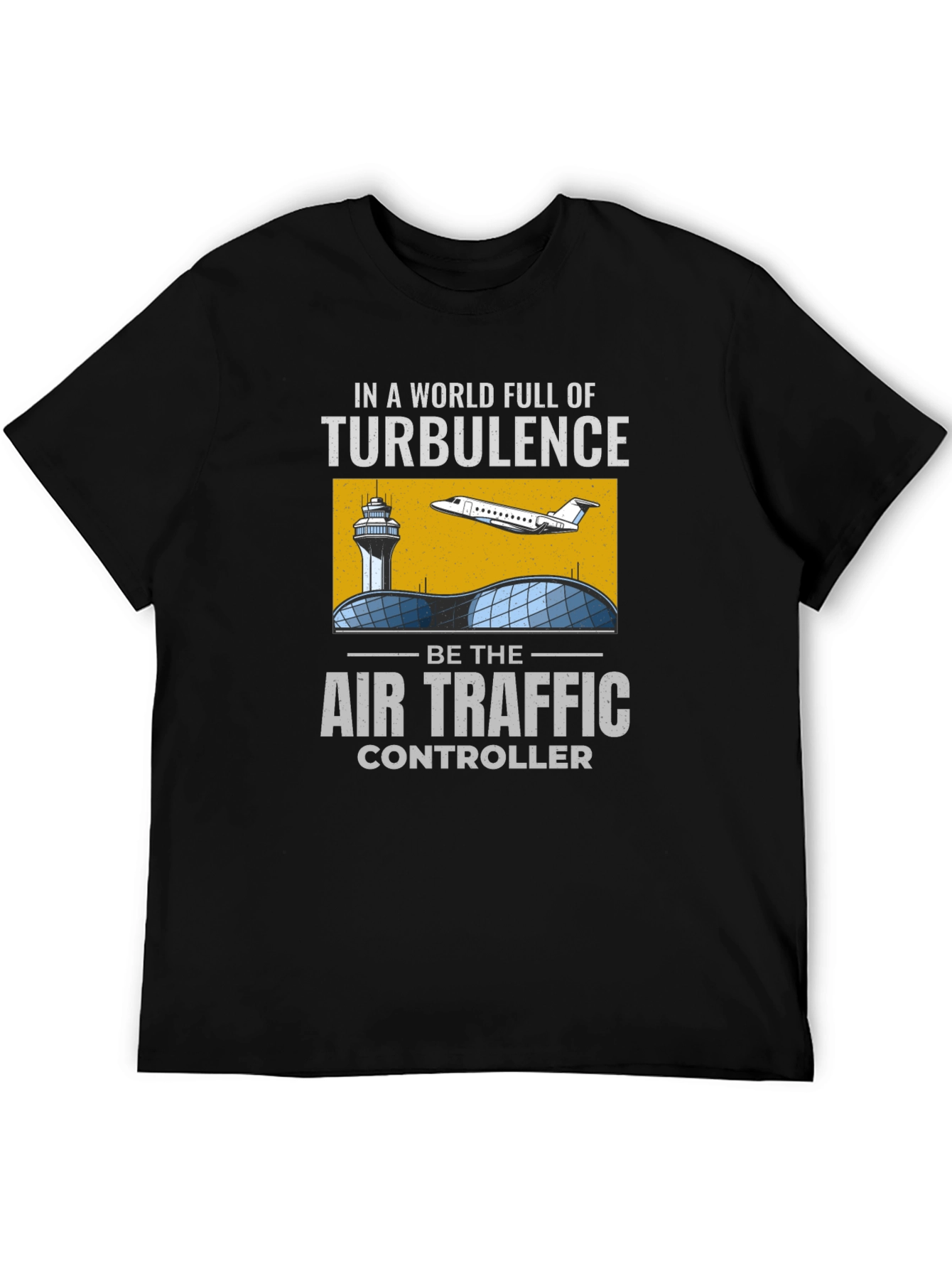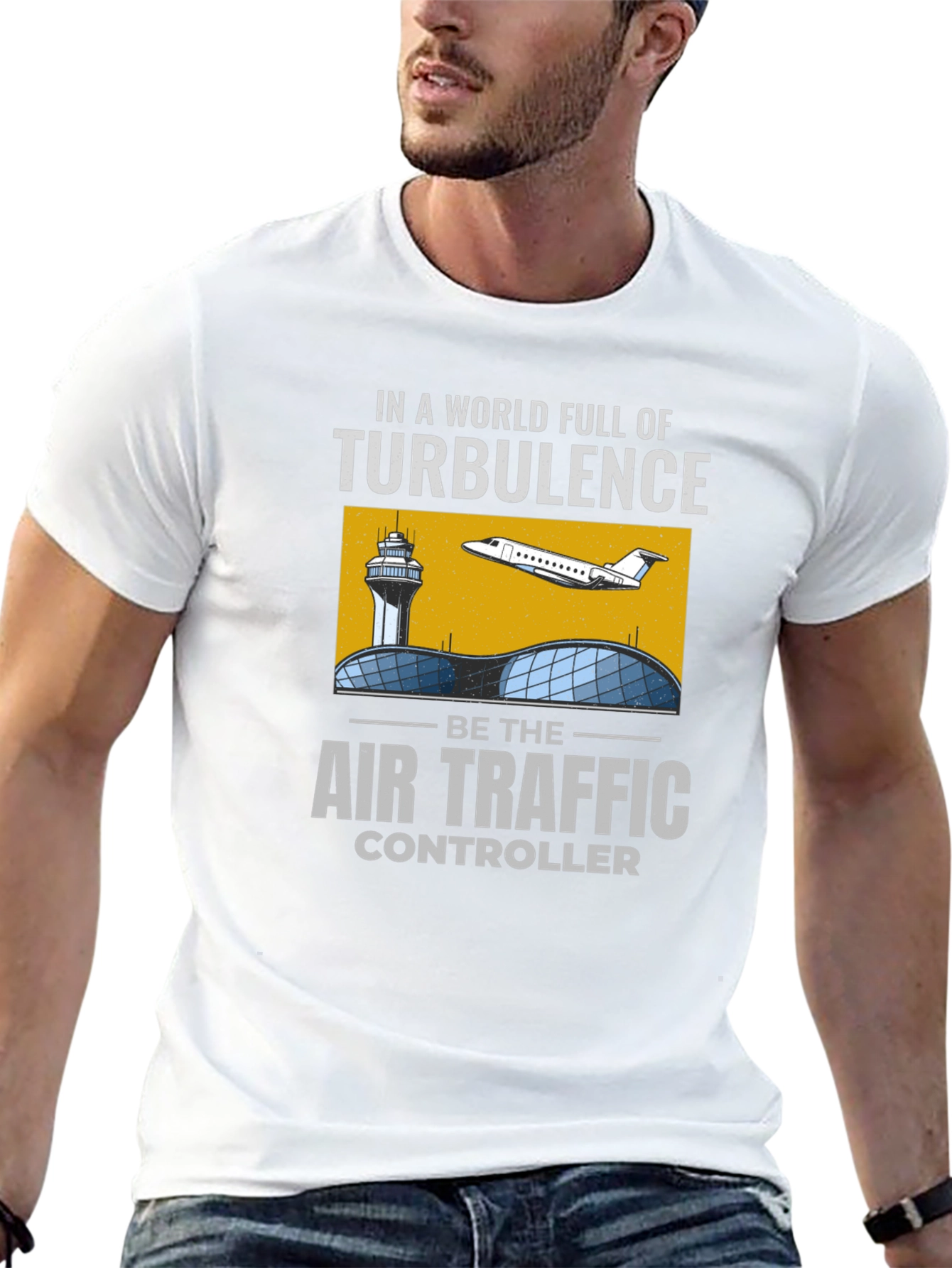 Show your passion with this unique Air Traffic Controller T-shirt! Featuring a creative design with an airport control tower, airplane, and the phrase "In a world full of turbulence, be the air traffic controller," this tee is sure to turn heads. Made from comfortable and durable fabric, it's perfect for everyday wear, aviation enthusiasts, or as a thoughtful gift. Express your love for aviation with this one-of-a-kind shirt. Get yours today!
