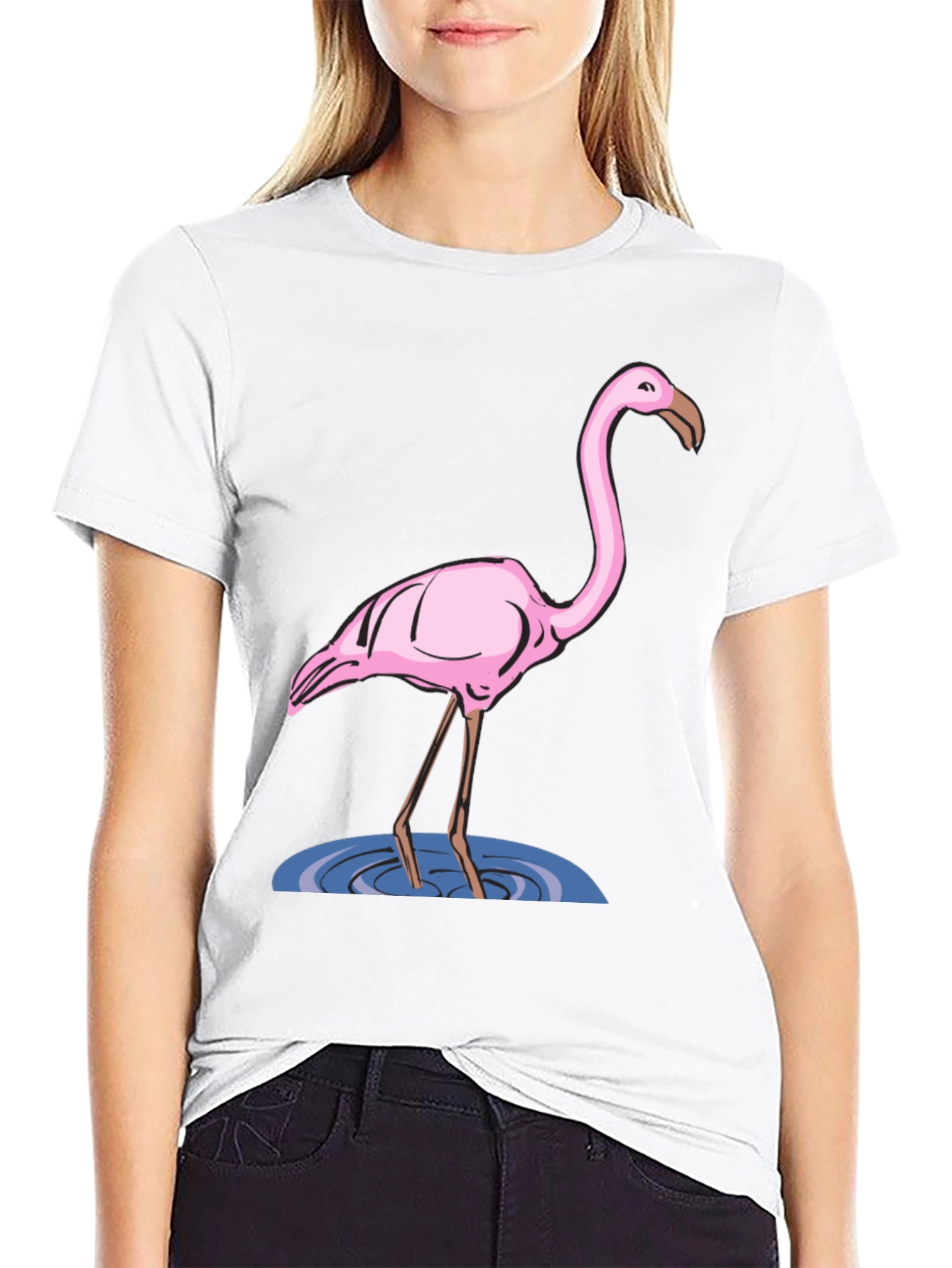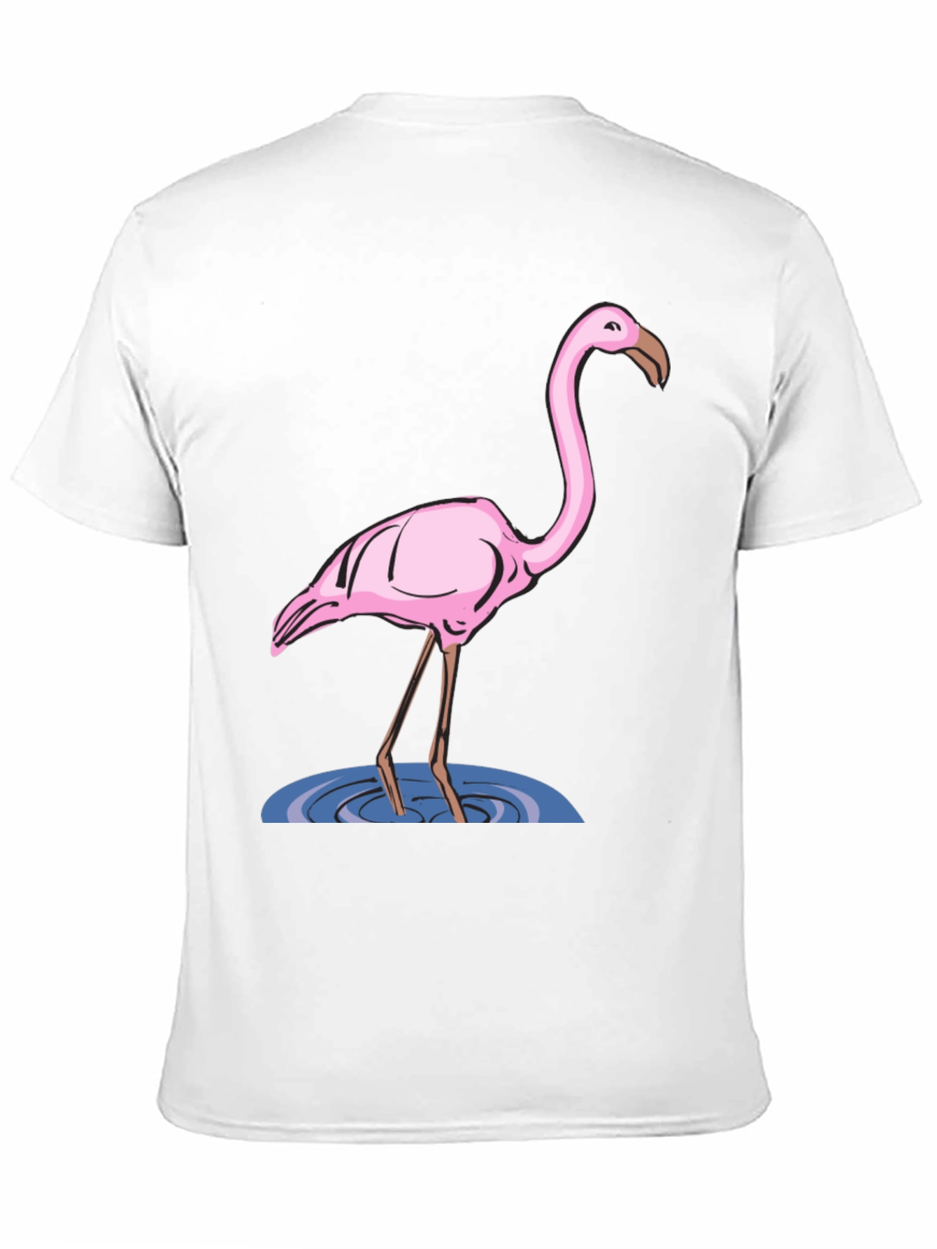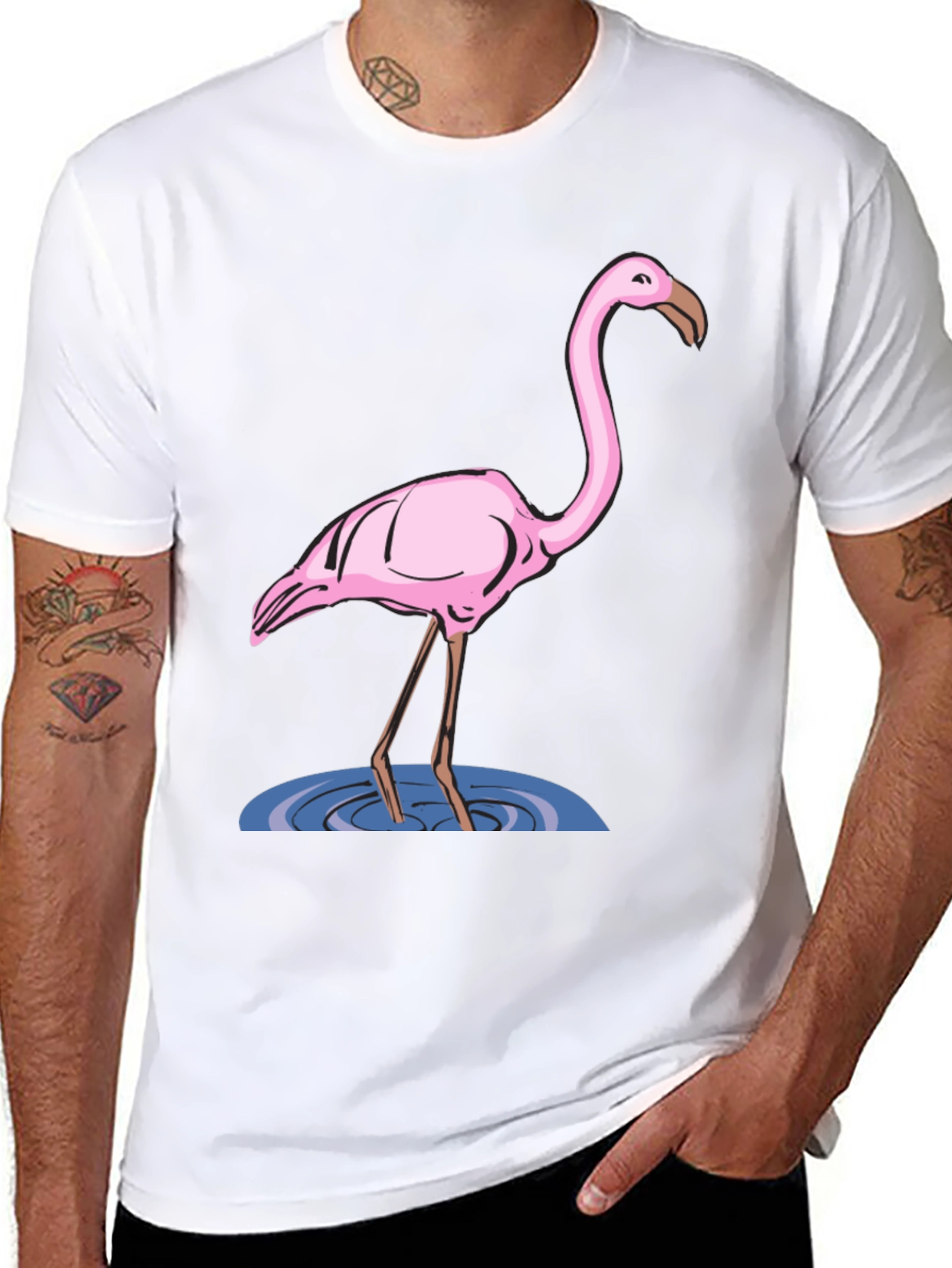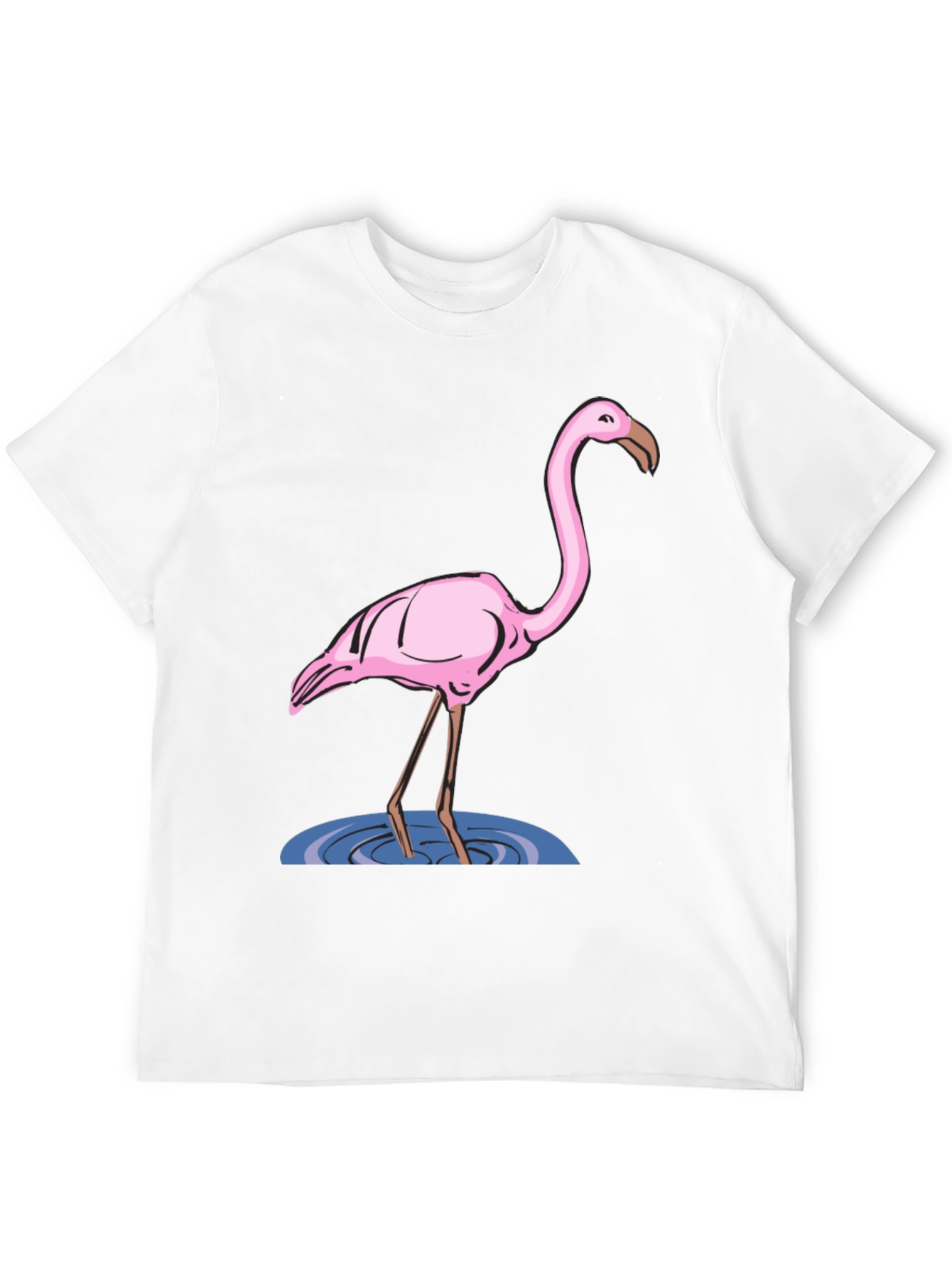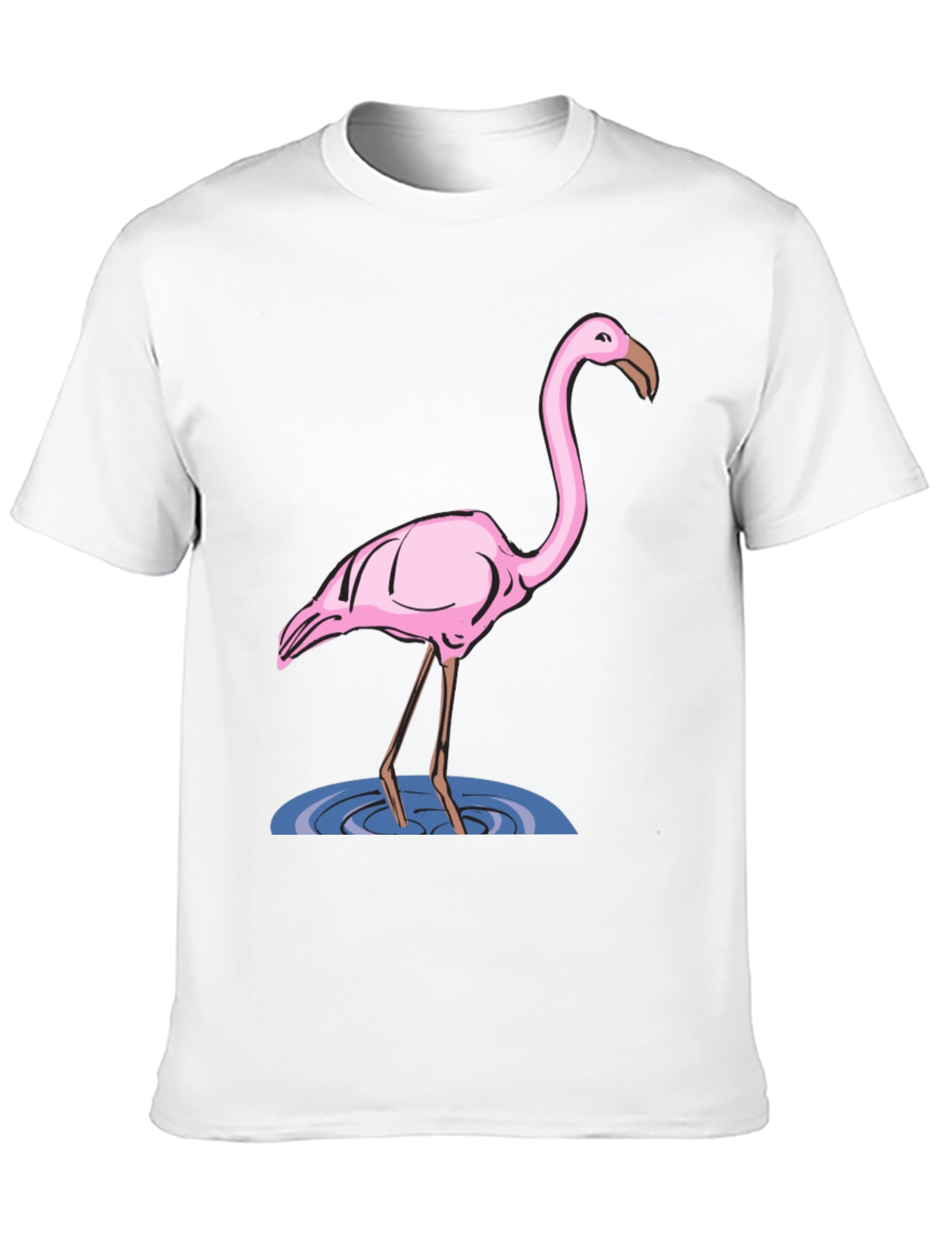 Flaunt your love for nature with this stylish black cotton t-shirt. This tee features a vibrant graphic of a pink flamingo wading in blue water, creating a fun and eye-catching design. The classic crew neck and short sleeves offer a comfortable and versatile fit. Made from soft, breathable cotton, this t-shirt is perfect for everyday wear. Whether you're heading to the beach, running errands, or simply relaxing at home, this flamingo tee will add a touch of tropical charm to your wardrobe. A great gift for bird lovers!