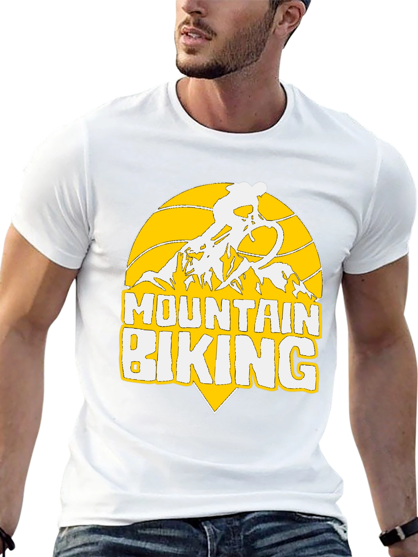 Embrace your adventurous side with this eye-catching Mountain Biking Graphic Tee! The shirt features a bold, stylized design with a mountain biker silhouette against a vibrant yellow backdrop. 'MOUNTAIN BIKING' is emblazoned across the front in striking white lettering. This tee is perfect for outdoor enthusiasts, cyclists, or anyone who loves to show off their passion for adventure. Crafted from comfortable, breathable fabric, this shirt is ideal for everyday wear, hitting the trails, or casual hangouts. Show off your love for the outdoors with this unique and stylish tee!