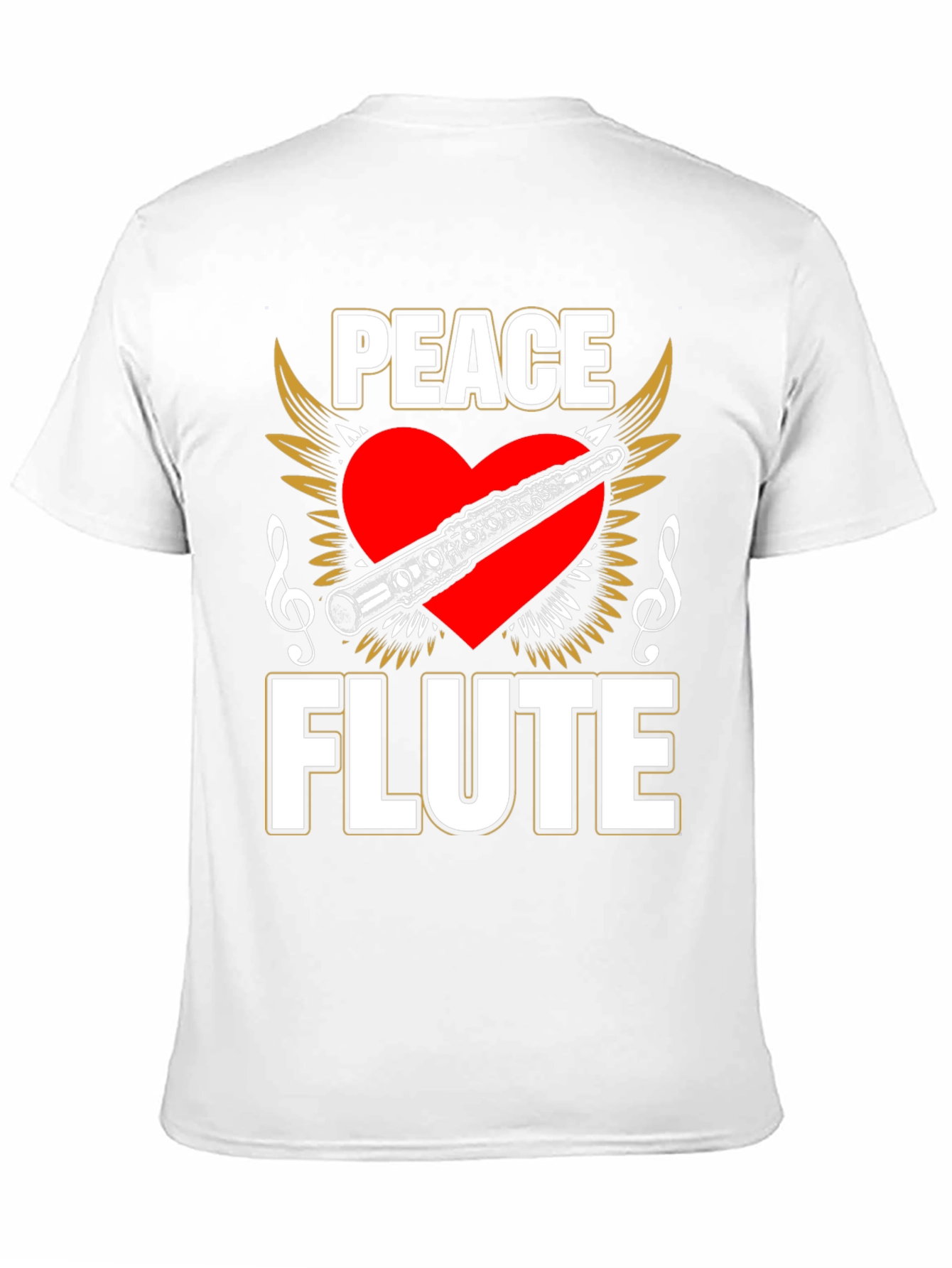 Express your love for music and peace with this unique "Peace Flute" t-shirt. The design features the words "Peace" and "Flute" in a bold, eye-catching font, complemented by a vibrant heart and artistic musical notes. A detailed image of a flute is overlaid on the heart. Made from a comfortable, breathable fabric, this shirt is perfect for musicians, music lovers, or anyone who appreciates a stylish and meaningful design. Wear it to concerts, music classes, or as a casual statement piece. Show off your passion for music and spread a message of peace wherever you go!