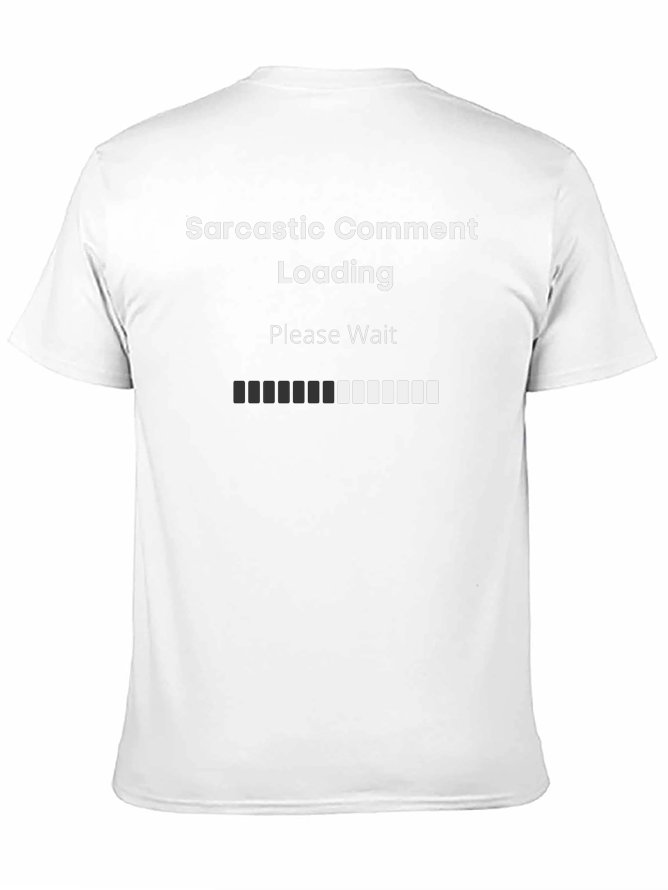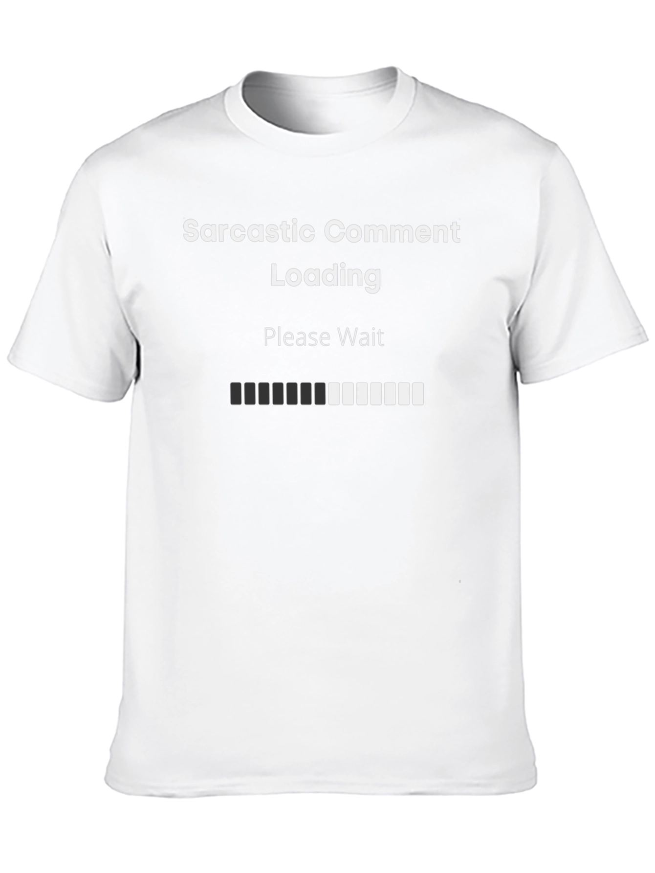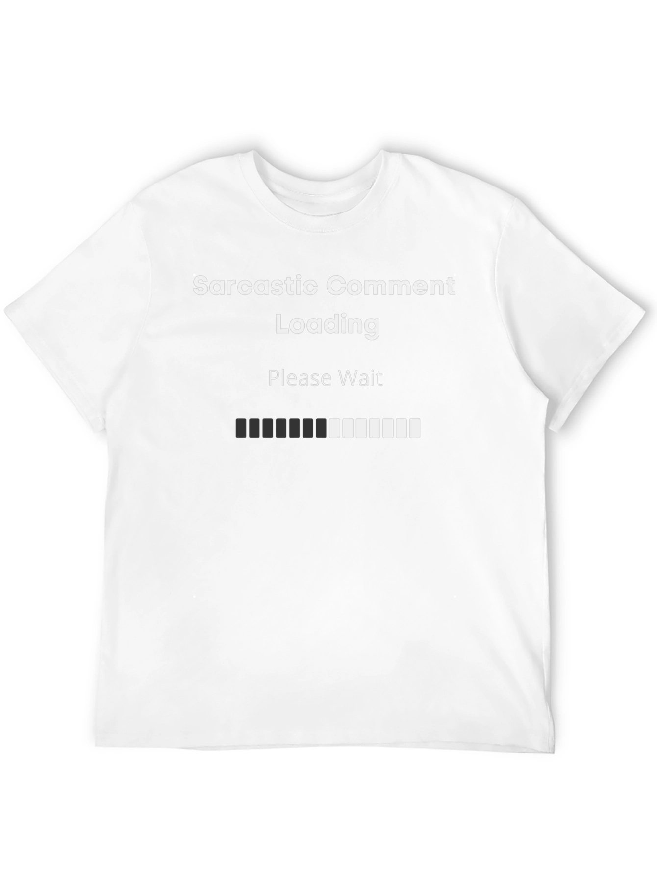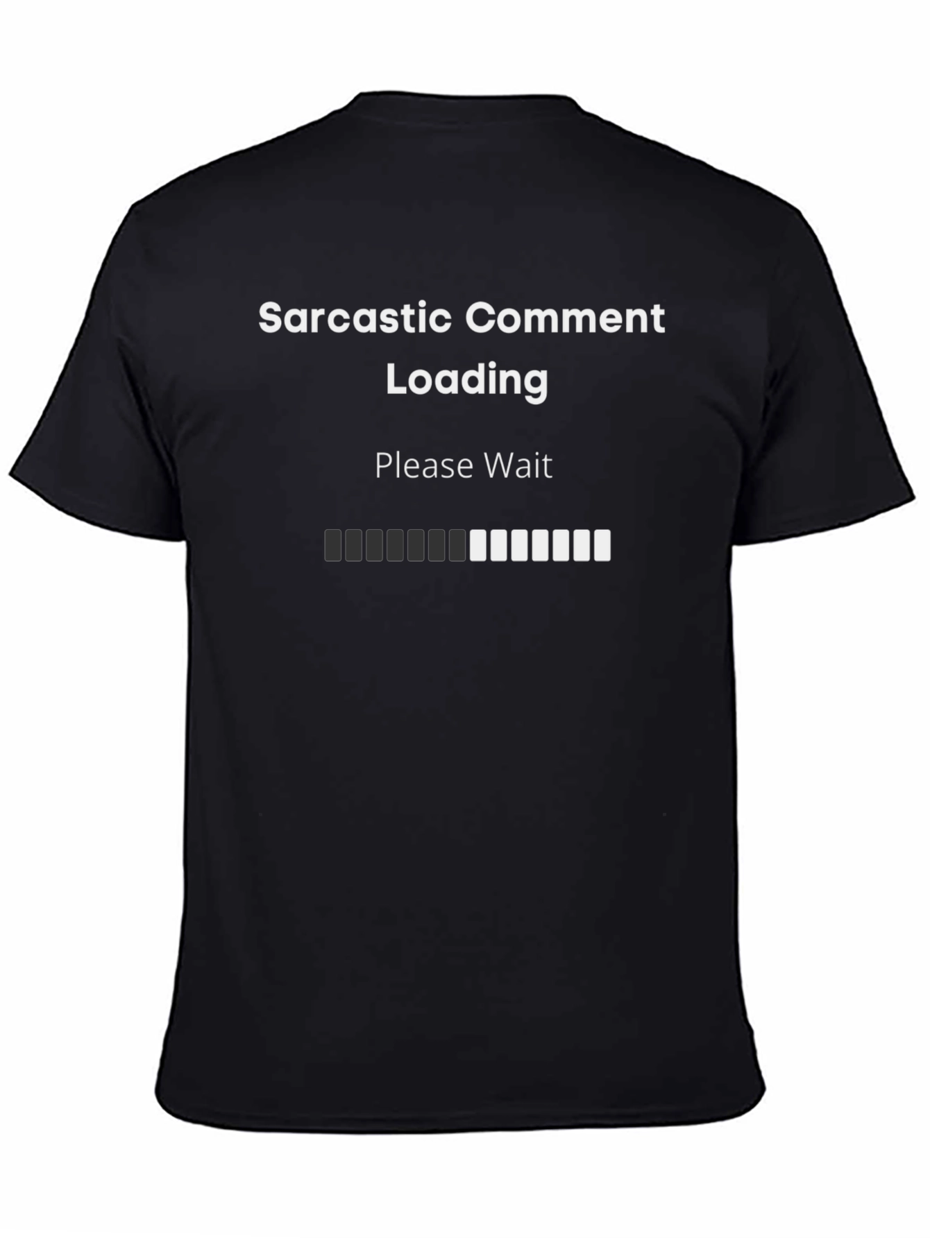 This trendy black t-shirt features a fun "Sarcastic Comment Loading" graphic with a progress bar design. Made from a soft, comfortable fabric blend, this casual tee is perfect for those with a witty sense of humor. The design adds a playful touch to any outfit. Wear it while hanging out with friends, attending casual gatherings, or just relaxing at home. Show off your sarcastic side with this stylish and amusing tee. A great conversation starter and a must-have for anyone who loves to make a statement with their clothing.