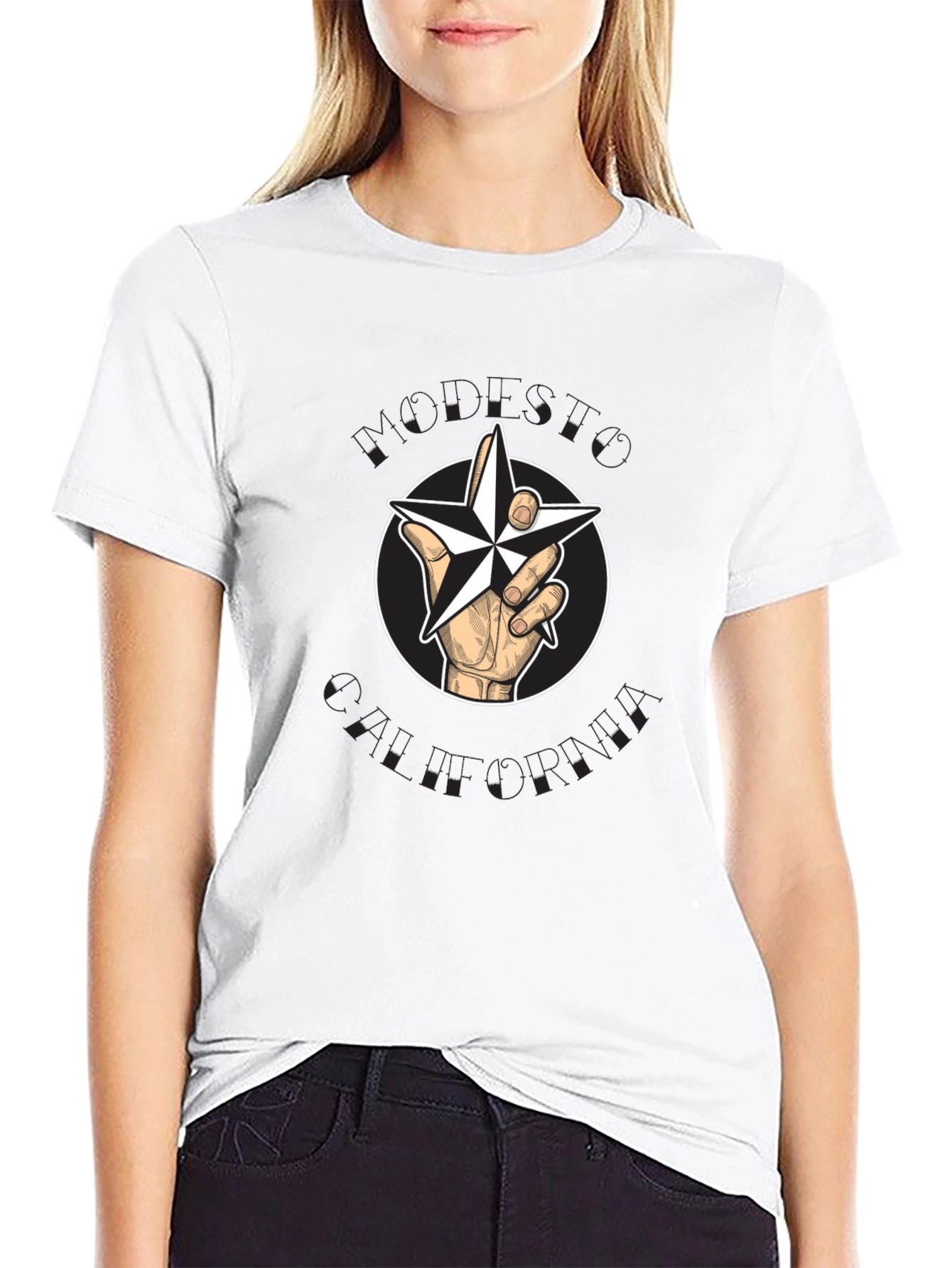 Star Hand T-Shirt - Graphic Print Cotton Tee